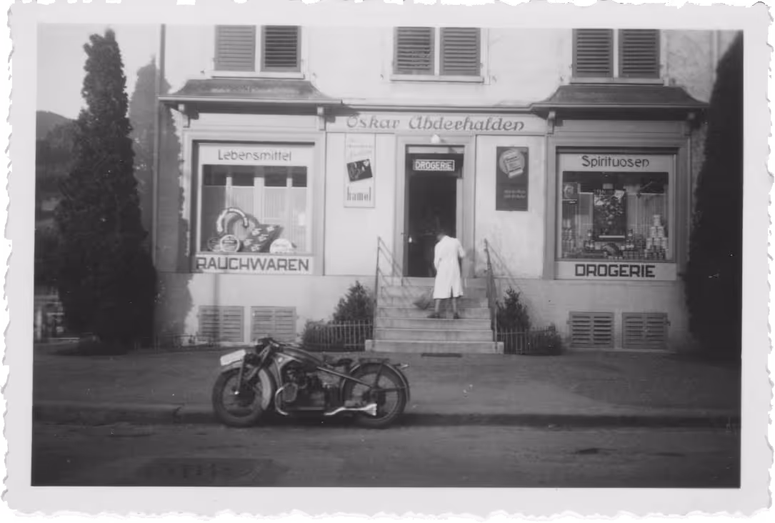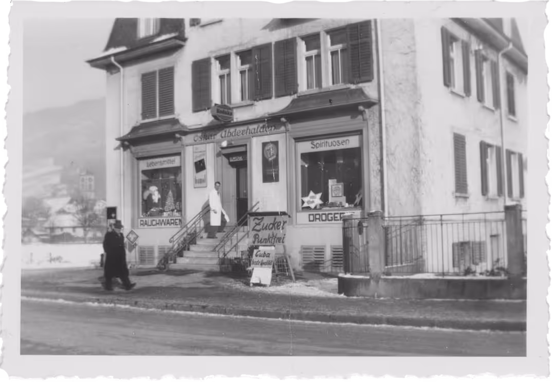 Es begann 1945, als Oskar Abderhalden Sr. und Martha Abderhalden das Haus Nummer 9 in der Wattwiler Bahnhofstrasse kauften, um eine Drogerie mit Lebensmittelladen zu eröffnen.