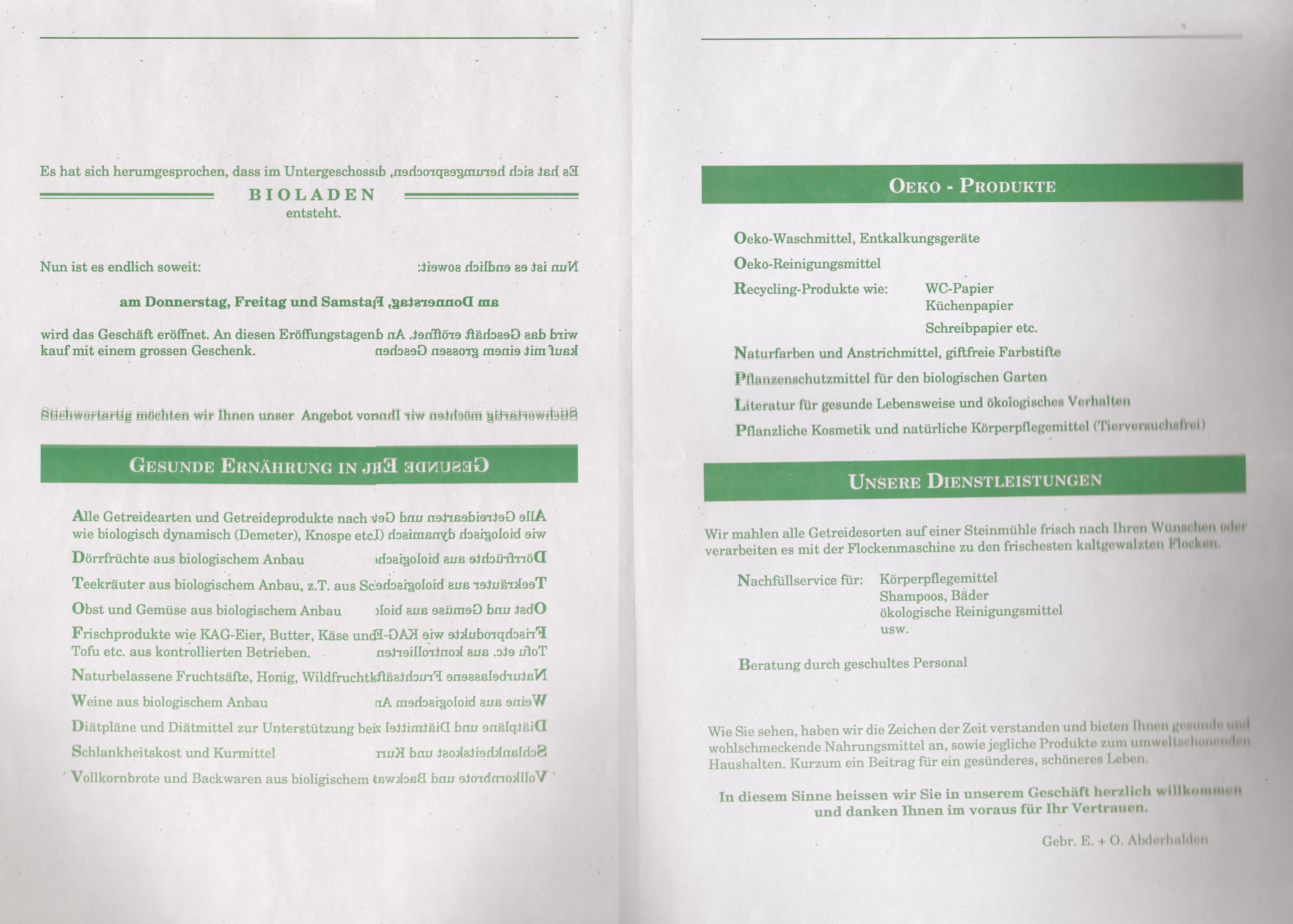 Der Farbladen sowie der Bastelbereich im Untergeschoss wird aufgegeben und an seiner Stelle eröffnet der Bioladen mit grosser Eröffnungsfeier.
