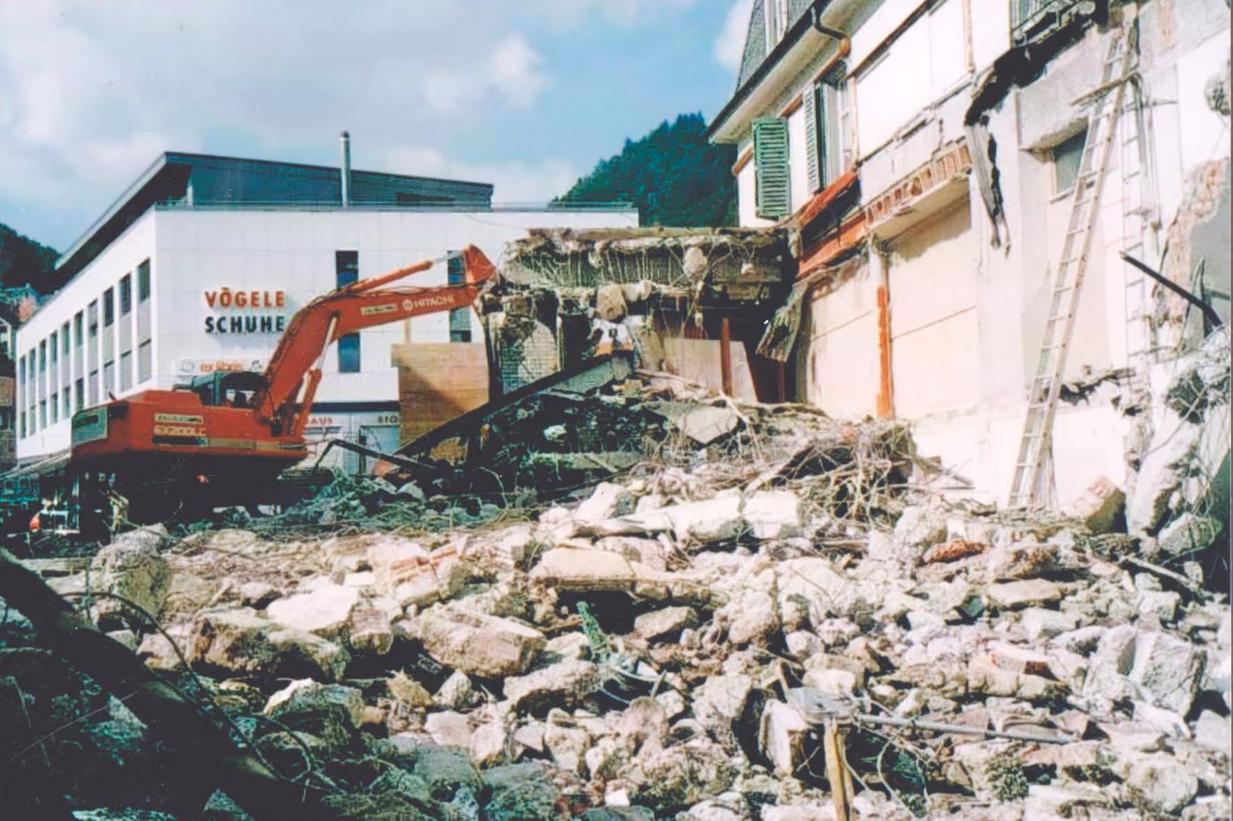Nach nur einjähriger Bauzeit präsentiert sich der Neubau zwischen den bestehenden Häusern Bichler und Abderhalden. Es ist ein gemeinsames Bauwerk der beiden Firmen. Die Neueröffnung der heutigen Drogerie findet im Juni 1997 statt.