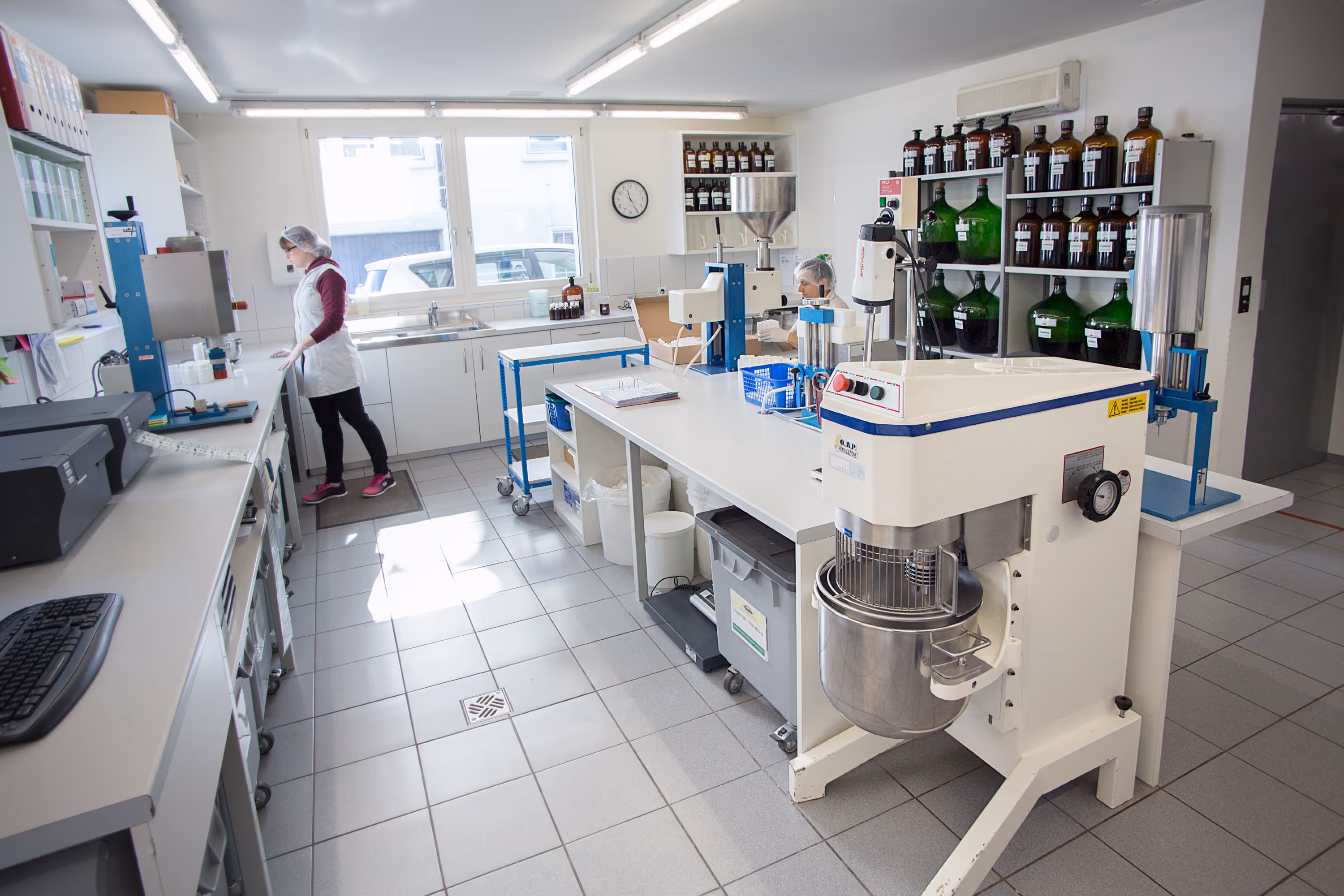 Aus einigen wenigen, zu über 100 und schliesslich zu 500 Stück wuchsen die Eigenprodukte an. Das Labor im Keller der Drogerie platzte aus allen Nähten, es musste ein grösseres Labor her. Im Hintergebäude konnte im Jahr 2025 ein modernes und sehr grosszügiges Labor entstehen. Mit viel mehr Platz und neuen Geräten, konnte der Bereich der eigenen Naturheilprodukte weiter wachsen.